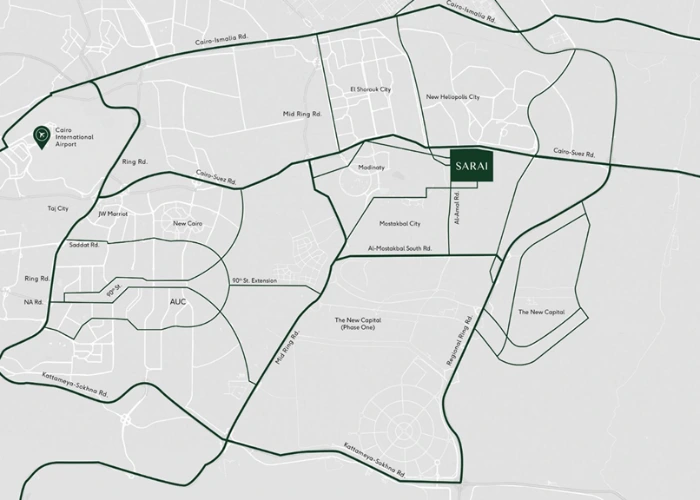Perfectly positioned next to Madinaty and directly on the Suez Road, Elm Tree Park Sarai connects you to New Cairo and the New Capital in minutes.